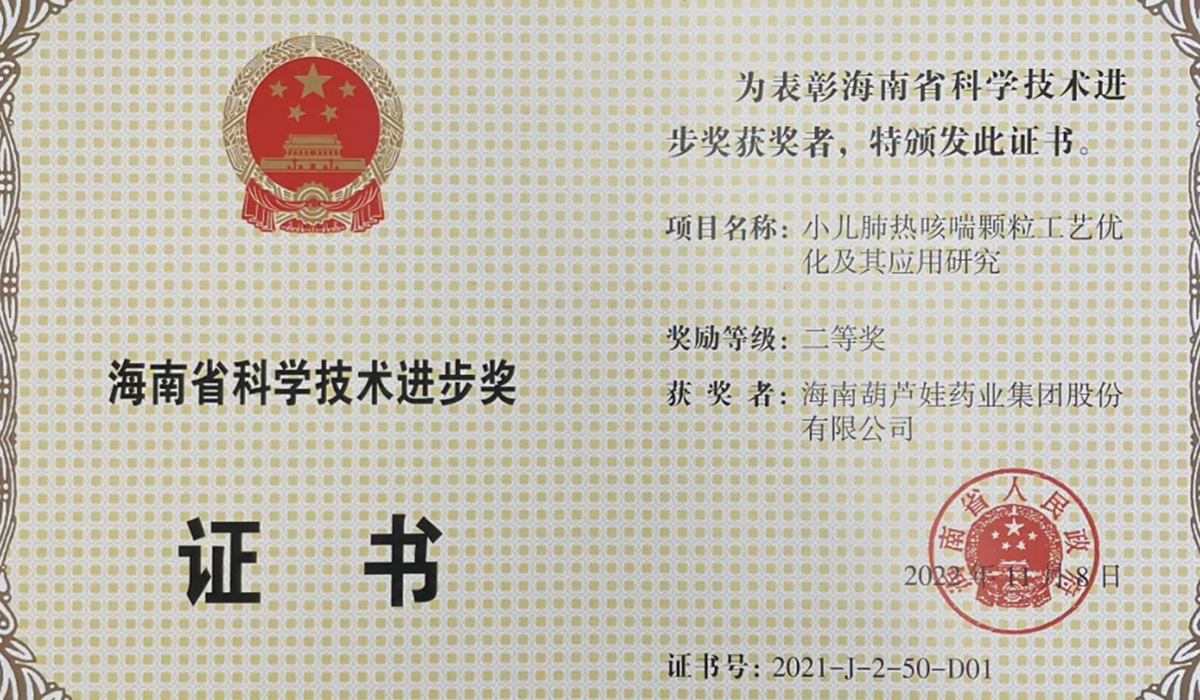 w66旗舰厅药业集团申报的专利“克咳片及其制备方法”荣获 第四届海南省专利奖金奖